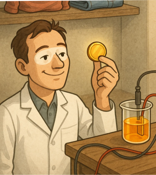Denn Strom in einer Flüssigkeit bedeutet: geladene Teilchen bewegen sich. Und sobald Ionen an den Elektroden ankommen, können sie Elektronen aufnehmen oder abgeben – es kommt zu Redoxreaktionen. Und genau hier beginnt die eigentliche chemische Vergoldung.