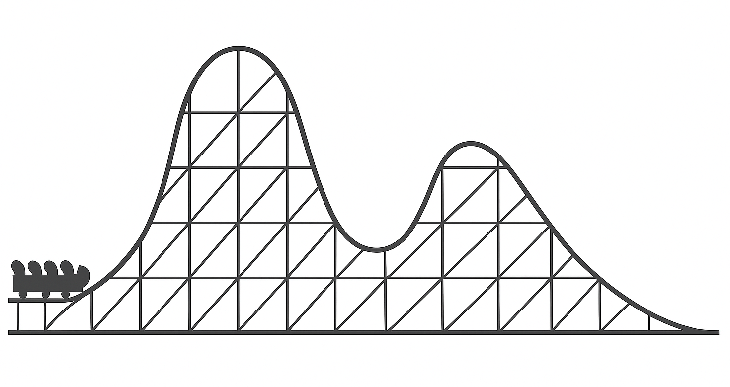 Stell dir eine Achterbahnfahrt vor – aber wir betrachten sie nicht von vorne oder oben, sondern von der Seite: