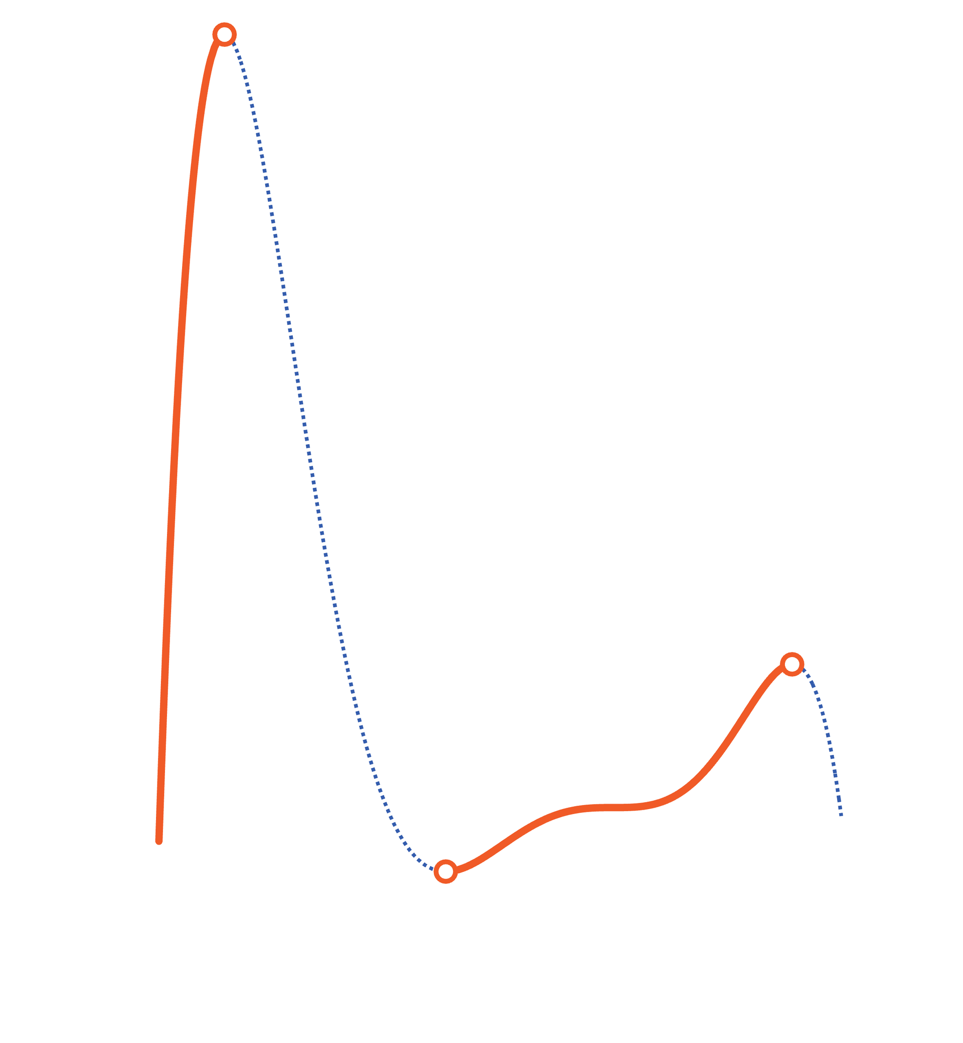 Wenn wir die Achterbahnfahrt von links nach rechts durchgehen und uns dabei nur den Höhenverlauf anschauen, dann erkennen wir: